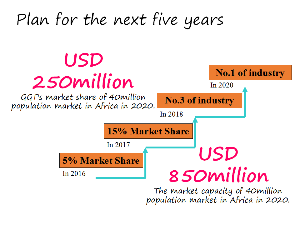 In five years, GGT will continue to invest up to 110 millions US dollar and introduce leading brands into Africa markets, which will improve quality of life for 500 million users from more than 30 countries.